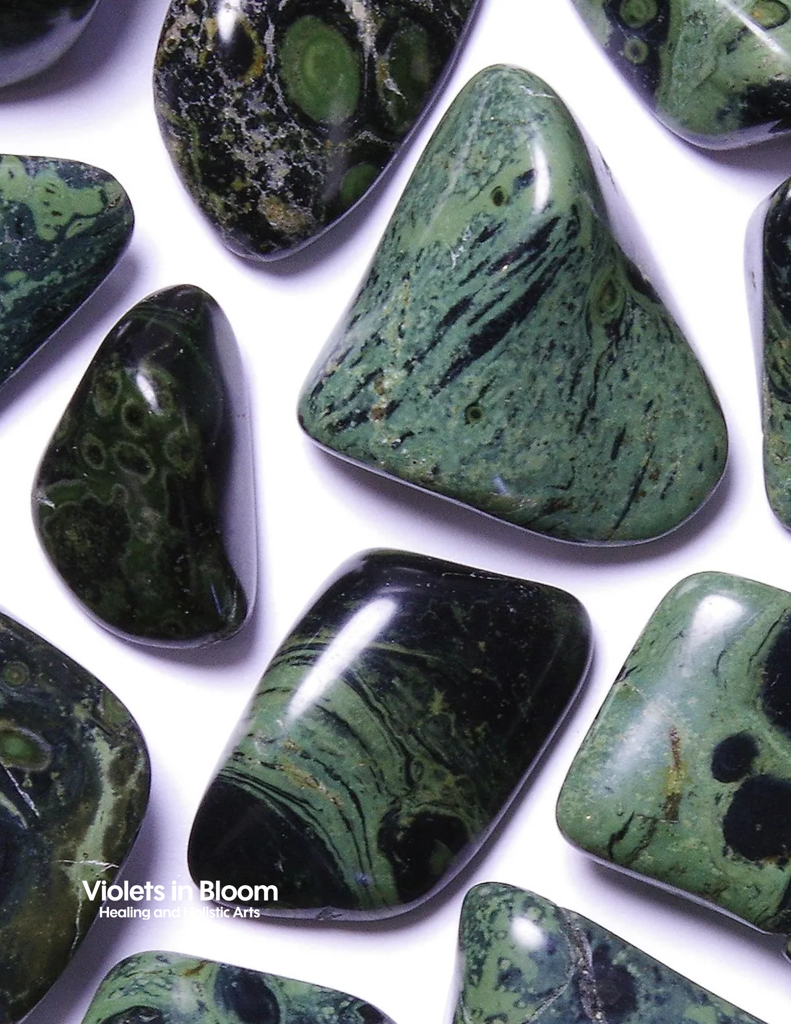 Kambaba Jasper Tumbles — Deeply grounding and calming, Kambaba Jasper is a stone of peace, protection, and connection to nature. Its dark green swirls with black fossilized patterns encourage tranquility, emotional healing, and harmony within the body and mind. Known to help release fear and stress while promoting patience and inner strength, Kambaba Jasper is perfect for meditation, energy work, or carrying as a talisman to invite serenity, balance, and a deep sense of rootedness.