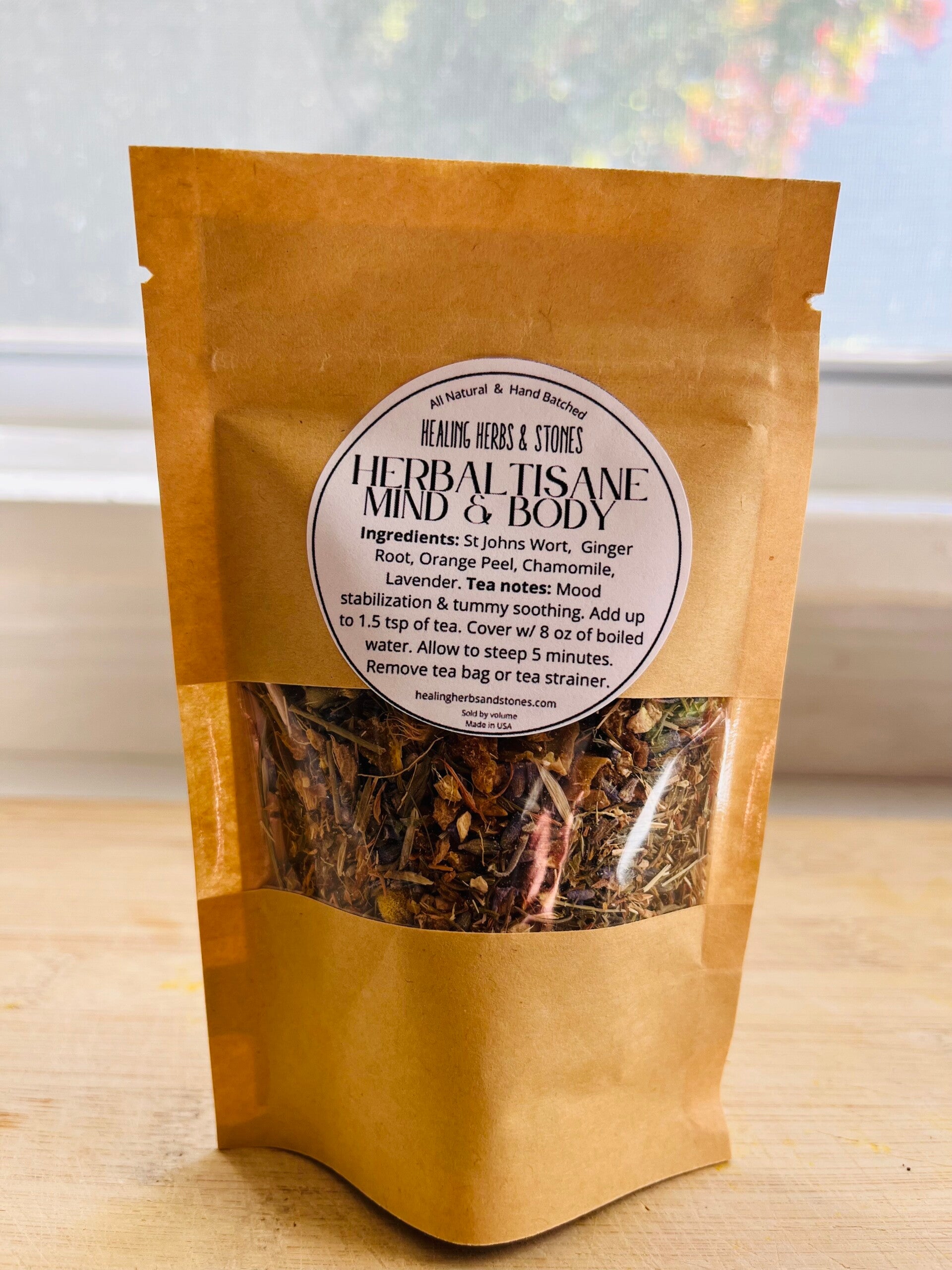 with our hand-blended herbal teas, (well technically they are are herbal tisanes, which is an herbal drink that does not contain actual tea leaves) are thoughtfully crafted in small batches using organic herbs to support your body, mind, and spirit. Each blend is created with intention—whether for calming the nerves, nurturing the heart, or energizing your day. From earthy roots to fragrant flowers, our teas are a ritual of self-care in every cup. Each pouch makes 5-8 cups of tea.